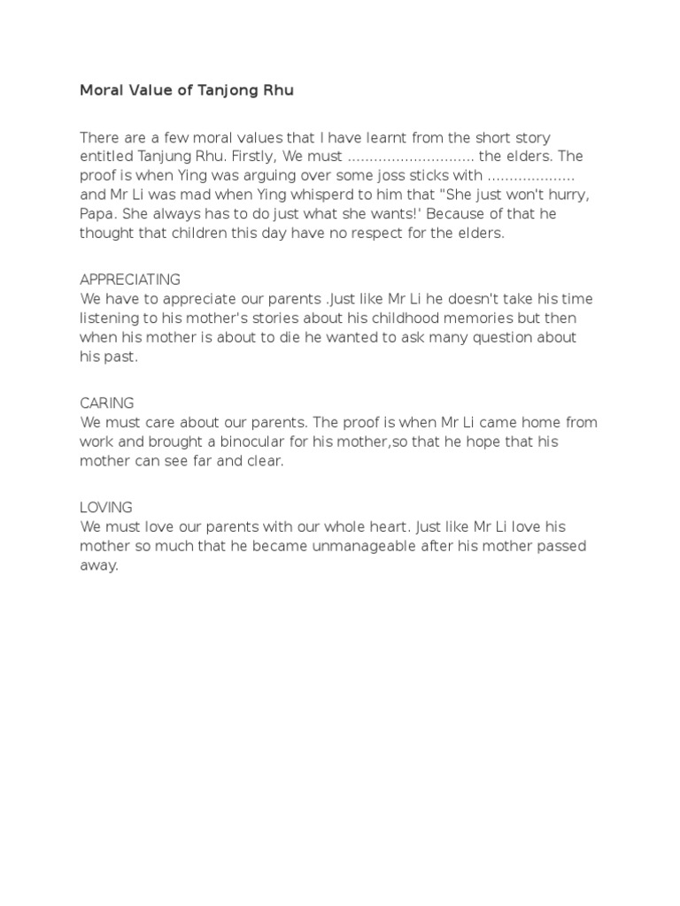 Moral Value Of Tanjong Rhu Pdf Family Society